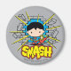 Check out Chibi Superman punching his way through a brick wall with a big "SMASH"!