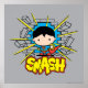 Check out Chibi Superman punching his way through a brick wall with a big "SMASH"!