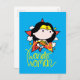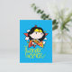 Check out Chibi Wonder Woman flying in the clouds with her lasso, spelling out her name with her rope, against a red star backdrop.