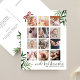 A beautiful modern photo grid collage postcard perfect for wishing Merry Christmas to your family and friends from the tropics of Hawaii (or any other warm place on Earth)! The modern and minimalist design features a collage of 12 square customizable photos - a year in review style. Below, there is a ´´mele kalikimaka´´ message in a chic whimsical green script and your family name and date, in classic lettering. A beautiful watercolor of tropical greenery and a red bow frame the card on the sides. On the back is your customizable holiday message, your return address, and the green palm branches motif on the bottom. Through the "personalization" button, you can replace the photos and change the text.
