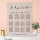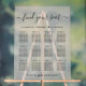 Chic light taupe frosted acrylic wedding seating chart sign for up to 12 tables featuring "find your seat" in an elegant script with, "We're so glad you're here" in simple modern typography and your names and wedding date joined together with a heart.