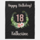 Chic black 18th Birthday fleece blanket with a Pink Glitter Floral Wreath. Customise the name and greeting message of the birthday girl.