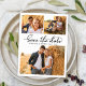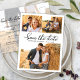 Modern Chic Calligraphy 3 Photo Collage Wedding Save The Date Postcard, a perfect blend of contemporary style and timeless charm. Immerse yourself in the allure of a striking 3-grid photo collage with elegant hand-lettered calligraphy. Crafted specifically for modern weddings, the reverse side facilitates seamless customisation, featuring a full photo adorned with a delicate translucent overlay for effortlessly adding your wedding specifics. Personalise this card effortlessly with your cherished photos and wedding details, ensuring a unique and unforgettable announcement for your special celebration.
