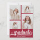 Add your favourite four photos to the front of these graduation party invitations featuring graduate and class of in chic lettering on a crimson red background. MORE designs and colours done in our store including invitations, save the date cards and postcards.