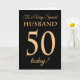 Chic 50th Gold-effect on Black, Husband Birthday Card