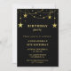 Black 5th birthday Party invite Gold Stars