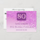 The front card features falling Pink Glitter on a pink gradient with shiny stars. The gold and Pink glitter Number is unique to announce the celebration of her 80th Birthday.