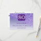 The front card features falling Purple Glitter on a Purple gradient with shiny stars. The gold and Purple glitter Number is unique to announce the celebration of her 80th Birthday.