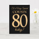 Chic 80th Gold-effect on Black, Cousin Birthday Card