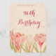 Women's elegant, personalised, floral crocus 90th birthday party celebration invitation custom template, with beautiful, vintage botanical art illustrations of big pink and white crocuses flowers with whimsical, fancy, curly, swirly, cursive, calligraphy script customisable pink colour font on a pretty vintage tan / beige background. Stylish, fancy, classy, chic, feminine, romantic, custom invitations for a woman's ninetieth / ninety years old / 90 years birthday party celebration. These sophisticated, simple, girly, cute, trendy, fashionable, vintage flowers invites templates are decorated on both sides / have double sided printing / are printed front and back. Bright, bold, cheerful, modern, contemporary, summery invites, perfect for spring and summer events, but also suitable for any time of year. Can be used for any age birthdays: 90th birthday, 91st birthdays, 92nd birthdays, 93rd birthday, 94th birthday, 95th birthday, 96th birthday, 97th birthday, 98th birthday, 99th birthday etc. All of the text on the front and reverse side is fully customisable / personalizable to meet your needs. If you need assistance customising your product please contact me through my store and I will be happy to help. PLEASE NOTE: All products on Zazzle have flat printed images.