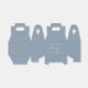Chic dusty blue wedding favour box featuring "a sweet thank you" in simple typography and an elegant white script with swashes, your first names joined together by a heart and your wedding date.