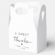 Chic wedding favour box with "A Sweet Thanks" in simple typography and a stylish modern script, and your names and wedding date.