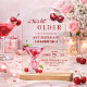 An elegant modern design featuring a watercolor illustration of a cherry martini tied with a pink bow and a cute cherry pattern on the back. Customize the details for a unique and chic Birthday Celebration.