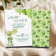 An elegant modern design featuring a watercolor illustration of a lime martini with green olives, tied with a green bow and a cute lime pattern on the back. Customize the details for a unique and chic Birthday Celebration.