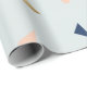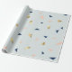 Wrap your gifts in modern elegance with this chic geometric design. The pattern features scattered abstract shards and triangles in a sophisticated color palette of navy blue, soft blush pink, and faux gold foil textures, all set against a calming dusty blue-grey background.