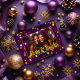 Chic and Festive Purple and Gold Confetti Photo Holiday Card