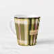 Start your day in style with this chic and trendy Pink Green and Gold plaid latte mug, personalised with your own monogram. This unique mug is perfect for coffee or tea lovers, and makes a great gift for house warming, bridal parties or just a stylish addition to your kitchen or any occasion. Made from high-quality materials, this mug is both stylish and durable, with a comfortable handle for easy grip. The modern plaid design is sure to complement any kitchen decor, and the personalised monogram adds a personal touch to your morning routine. Shop now and add a touch of luxury to your daily cup of coffee or tea with this personalised latte mug! Look for similar styles in our Wexford Collection! Personalised Pink Green and Gold Plaid latte mug with monogram, perfect gift idea!