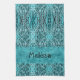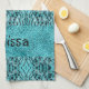 This Kitchen Towel features an chic animal print in blue. Beautiful feathers, glitter, cool pattern! Personalised Kitchen Towel for her. Custom text and glitter.