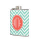 Chic Aqua Green Chevron and Orange Custom Monogram Hip Flask