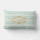 Chic Aqua Linen Look with Gold Edged Stripes Lumbar Cushion