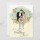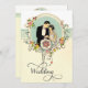 Elegant Art Deco vintage wedding invitations with a romantic antique art illustration of a beautiful Edwardian era flapper bride and handsome groom from the 1920's 1930's surrounded by a pretty, colourful circular border of flowers with ornate swirls and curls. The bride is wearing a classic traditional white wedding gown with a long flowing veil and lovely bouquet of pink and blue flowers. The main colours of the invitation are cream, teal / turquoise blue, pink and white. The pretty, swirly, curly, swash, cursive, fancy, sophisticated, ornate "wedding" text on the front is fixed. These cute, retro, colourful, whimsical, old fashioned, trendy, fashionable, chic, glamourous, classy, original and unique vintage invites for weddings are printed / decorated on both sides / have double sided printing. All of the text can be easily customised to meet your needs and you can change the font style, colour and size of font if you desire. If you need any assistance customising your product please contact me through my store and I will be happy to help. PLEASE NOTE: All products on Zazzle have flat printed images.
