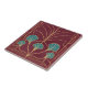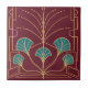 Art Deco water spout fountain tile with faux metallic & slight glossy effects in gold and turquoise or aqua blue on a cherry red background. Perfect as a trivet or for a stylish retro bathroom tiling home decor. Designed by Anne Londez.