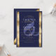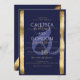 Chic Artsy Navy Gold Brushstroke Frame Wedding Invitation