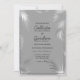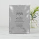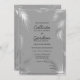 This elegant, modern, and chic wedding invitation is the perfect design for your special day. It depicts a faux printed silver foil metallic artsy leaves with a sparkly silver glitter frame on top of a slate grey background. It's a simple, contemporary, and unique luxe design.