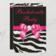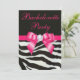 Chic Bachelorette Party Zebra Stripes Hot Pink Bow Invitation