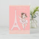 Girls' elegant pink vintage princess ballerina Paris Eiffel Tower baby shower invitations with a beautiful vintage illustration of a cute and adorable baby girl with stylish pink Princess crown, pink tutu and ballet shoes dancing next to the Parisian Eiffel Tower. The background is a pretty pink with a classy pink chevrons border. Our little princess is on her way! Chic, trendy, feminine, sophisticated, glamourous, girly, fun, fashionable, whimsical, affordable, personalised / personalised baby shower on a budget custom invite templates for girl baby showers. Decorated on both sides. The back / reverse side has the same design. Double sided printing / front and back. If you need any assistance customising your product please contact me through my store and I will be happy to help. PLEASE NOTE:- All invitations on Zazzle have flat printed images.