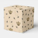These Chic Bees and Gold Crown Queen Bee Favour Boxes feature hand-drawn buzzing bees amidst royal gold crowns against an elegant cream background.