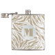 A stylish flask - in 2 sizes - features a pattern of beige wild animal print accented with your chic initial monogram. Create for yourself or give as a gift.