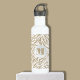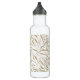 A stylish white water bottle features a beige and white zebra animal print accented with your initial monogram. Create for yourself or give as a gift.