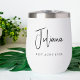 Chic custom thermal wine tumbler gift for a favourite aunt on her birthday, mother's day or Christmas that showcases her name in a stylish calligraphy script monogram. Personalise whether she is called aunt, auntie, tia, etc. If needed, edit in the design tool to increase or decrease the script size for longer or shorter names.