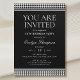 Announce your event in style with this chic and stylish party invitation. A fashion inspired design featuring the iconic houndstooth pattern, paired with contrasting stripes and classic typography. Perfect for hosting a birthday party, anniversary, dinner party, lunch or cocktail party! Colours: black and white. Available as a printed invitation or a digital download.