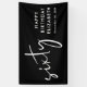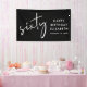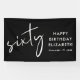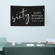 Chic black 60th birthday party banner and welcome sign that features "sixty" showcased in a large white script and your name and the date in modern white lettering.