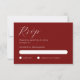 Chic Black and Red RSVP card. Featuring a vibrant deep red background on the front with the white text, this card is designed to captivate. The reverse side contrasts beautifully with a sleek black background. The minimalist yet striking design is perfect for couples looking to make a memorable impact. Plus, the text is fully customisable, allowing you to personalise every detail to match your unique wedding style.