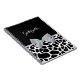 A chic black and white giraffe print notebook with an elegant silver grey ribbon tied into a feminine bow. Personalise this girly animal print design by adding your name. Flat printed image, not actual bow.