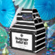 Perfectly classic black and white seersucker striped hangover relief kit favour box that is customisable.