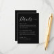Featuring chic white text on a black background, this minimalist enclosure card combines elegance and simplicity for a stylish way to present your wedding details. It can be easily personalised with your wedding details. Matching items available.