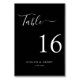 With bold white script on a sleek black background, this chic minimalist table number card adds a touch of sophistication to your wedding reception. Easily customisable, it’s perfect for couples seeking a stylish and modern way to guide guests to their tables. Matching items available.