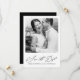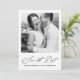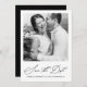 Elegant calligraphy and black back of card photo wedding save the date card.