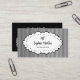 These elegant, whimsical business cards feature a hand-drawn wavy and polka dotted frame with a trendy bow, on a chic black and white striped background. The back of the business card is black and has a scannable QR code. Perfect for any feminine, stylish occupation or business, such as spa, salon, fashion, boutique, or vintage clothing sales.