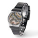 Enhance your outfit with this elegant wristwatch, which features a stunning black, white, coral pink, red, and gold marble wave art pattern. This watch makes an ideal gift for yourself or someone special, and it serves as a beautiful addition to your everyday fashion.