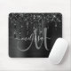 Chic Black Dripping Glitter Metal Monogram Mouse Pad