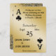 Unique Save the Date card with Black Ace of Clubs on a gold background and Black Glitter for celebrating a fun Wedding Anniversary, a Birthday or a Wedding.