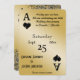Unique Save the Date card with Black Ace of Hearts on a gold background and Black Glitter for celebrating a fun Wedding Anniversary, a Birthday or a Wedding.