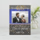 Chic Black and Gold invitation with blue silk introduces the photograph of the couple.