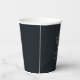 This chic black and gold retirement party paper cup features a modern geometric hexagon around your personalised message in white typography. Elegant decor for a retiree to be celebrated by friends and family at the end of their career.