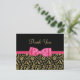 Chic Black Gold Floral Damask Pink Bow Thank You Postcard